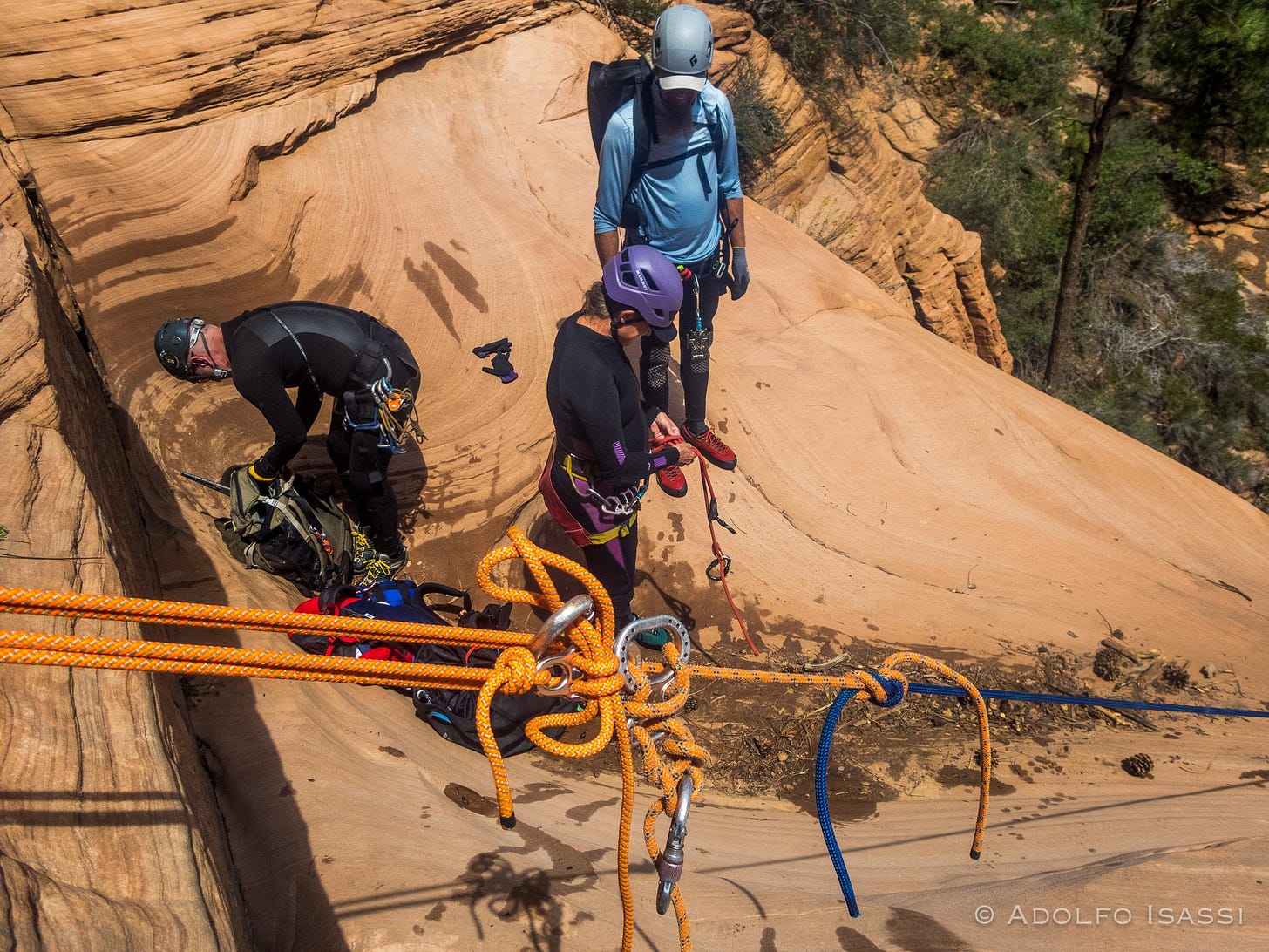 Good friend and Canyon Guides International Pro Guide Shane Wallace commented that a good idea to add to these Best Practices: Make sure that the last 2 team members going down on a tails-down-static system need to have solid self-rescue skills: